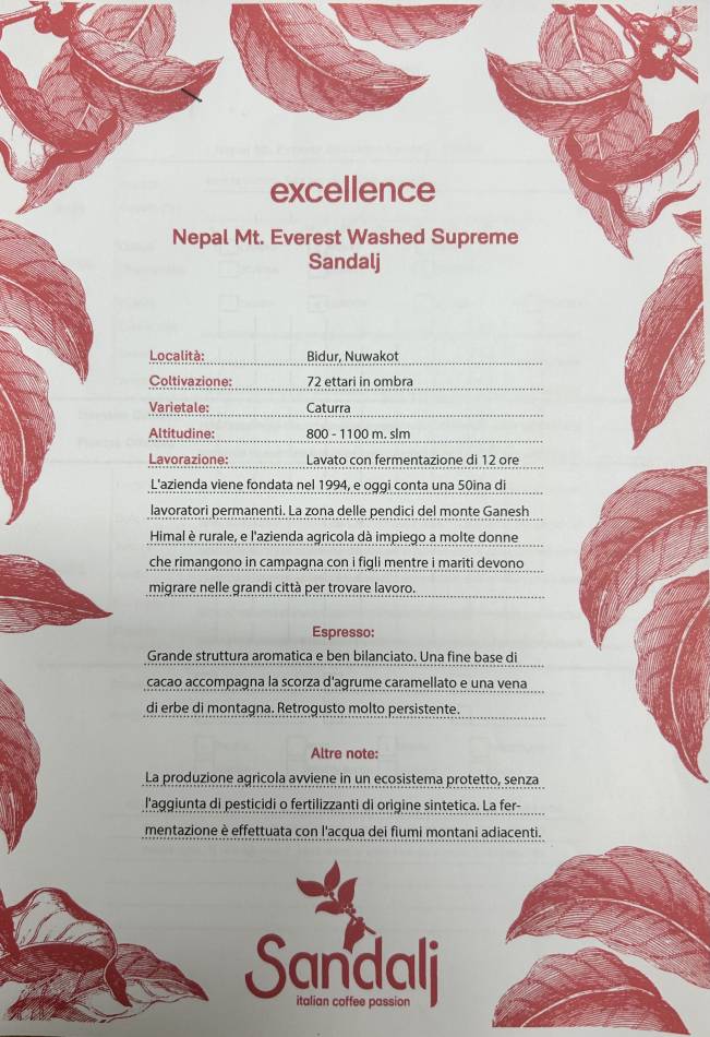 Caffè dalla grande struttura aromatica e ben bilanciato. Una fine base di cacao accompagna la scorza d’agrume caramellato e una vena di erbe di montagna .